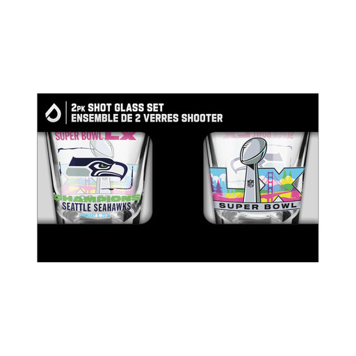Toast the ultimate victory with this 2-pack shot glass set from Inglasco. Featuring crisp Super Bowl 2026 Champions Sea Seahawks graphics these gla...
