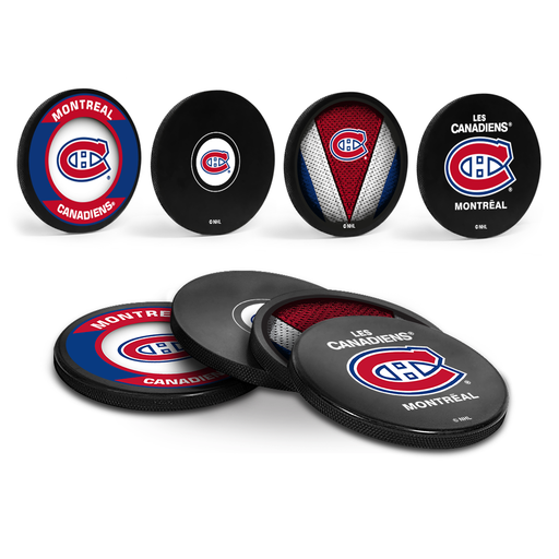 Sous-verres rondelles de hockey des Canadiens de Montréal de la LNH. Pack de 4 en cube acrylique. Affichez les couleurs de votre équipe lors de vot...