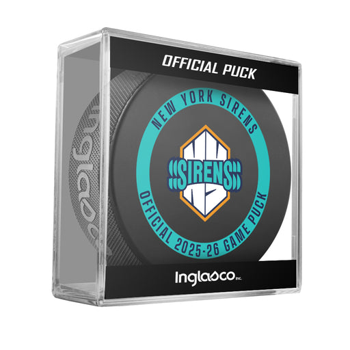 PWHL New York Sirens Officially Licensed 2025-26 Game Puck Design In Cube